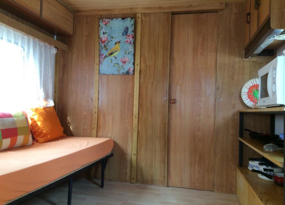 Està distribuïda en 3 espais totalment separats per portes: 1 habitació de matrimoni, 1 saló amb sofà-llit per a una persona i 1 habitació individual.