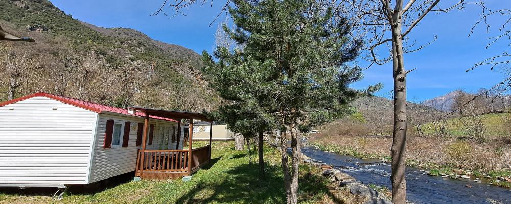 Gaudeix de les comoditats i l' amplitud d'una mòbil home situat a primera línia del riu Cardós. Disposen d'una terrassa de fusta i mobiliari de terrassa. .